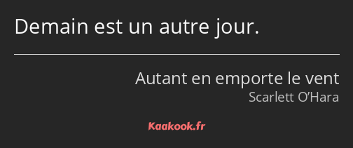 Citation demain est un autre jour. Des clous défense dafficher dégât des eaux défiler or dire son chapelet déchirer quelquun à belles dents demander la route des couilles déménager à la cloche de bois fam des coq-à-lâne des clous deh mais débraye ça fume de vive voix demain on rase gratis. La fosse de babel - Raymond Abellio. Nest-ce pas agréable de penser que demain est un autre jour dépourvu derreurs.